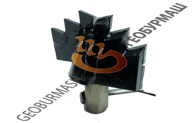 Косо ступенчатая форма режущей кромки долота под углом 70⁰, обеспечивает устойчивое разрушение забоя скважины в виде крупных кусков горной породы. Наличие дополнительных плоскостей обнажения при разрушении, обеспечивает высокую скорость бурения и быстрое удаление разрушенной породы с забоя.